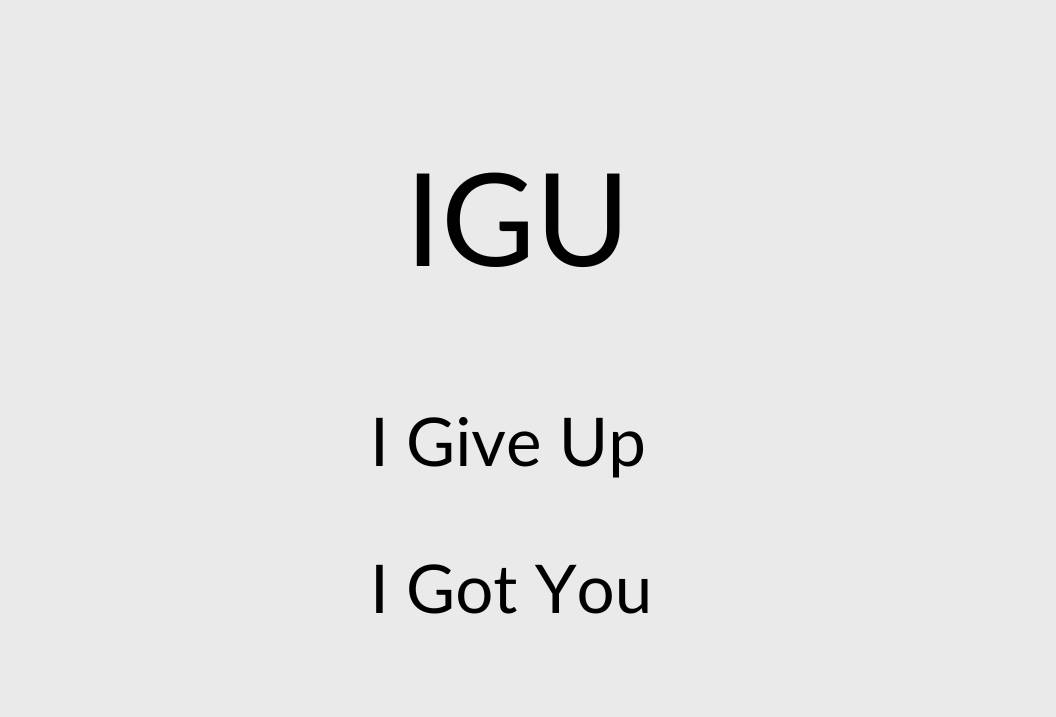 Instead of typing out a long explanation, you simply send “IGU.” It’s a quick way to wave the white flag and move on.